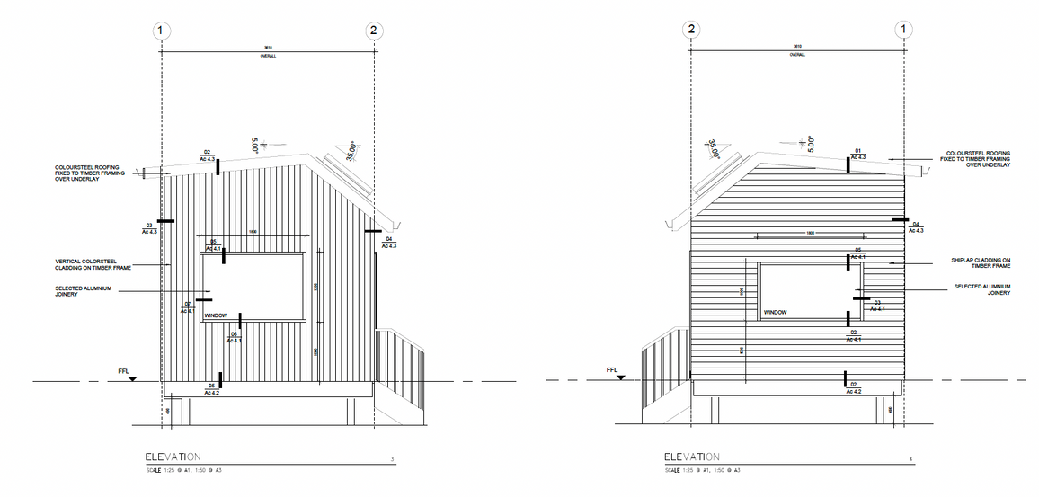 Choosing one our existing floor plans & designs, this small dwelling was adapted to suit client & site specific needs. Designed on Stop digging screw piles.